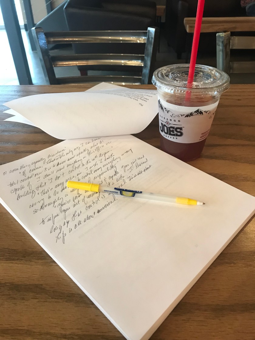Working on Shadows and Stars while waiting for the Farmington Writers Circle meeting at 6:30.