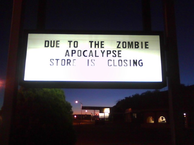 Over the last few days I have noticed this sign in front of a sporting goods store in Farmington, New Mexico. This is the same town where I saw the Zombie response vehicle several months ago (if you didn’t see the post, I have included one of the photos below). My question is: does everyone else know something I don’t? 🙂