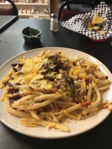 After the meeting at about 5:30, I dropped by Studio 116 to find out what time their concert started. They weren’t starting until 7:00. I mentioned I would pass the time by going to dinner across the street at the Chile Pod. Karen recommended the Nacho Fries appetizer as a whole meal. She was right. They put a lot of Nacho Fries on a plate for a very reasonable price and the fries include Carne Adovada!